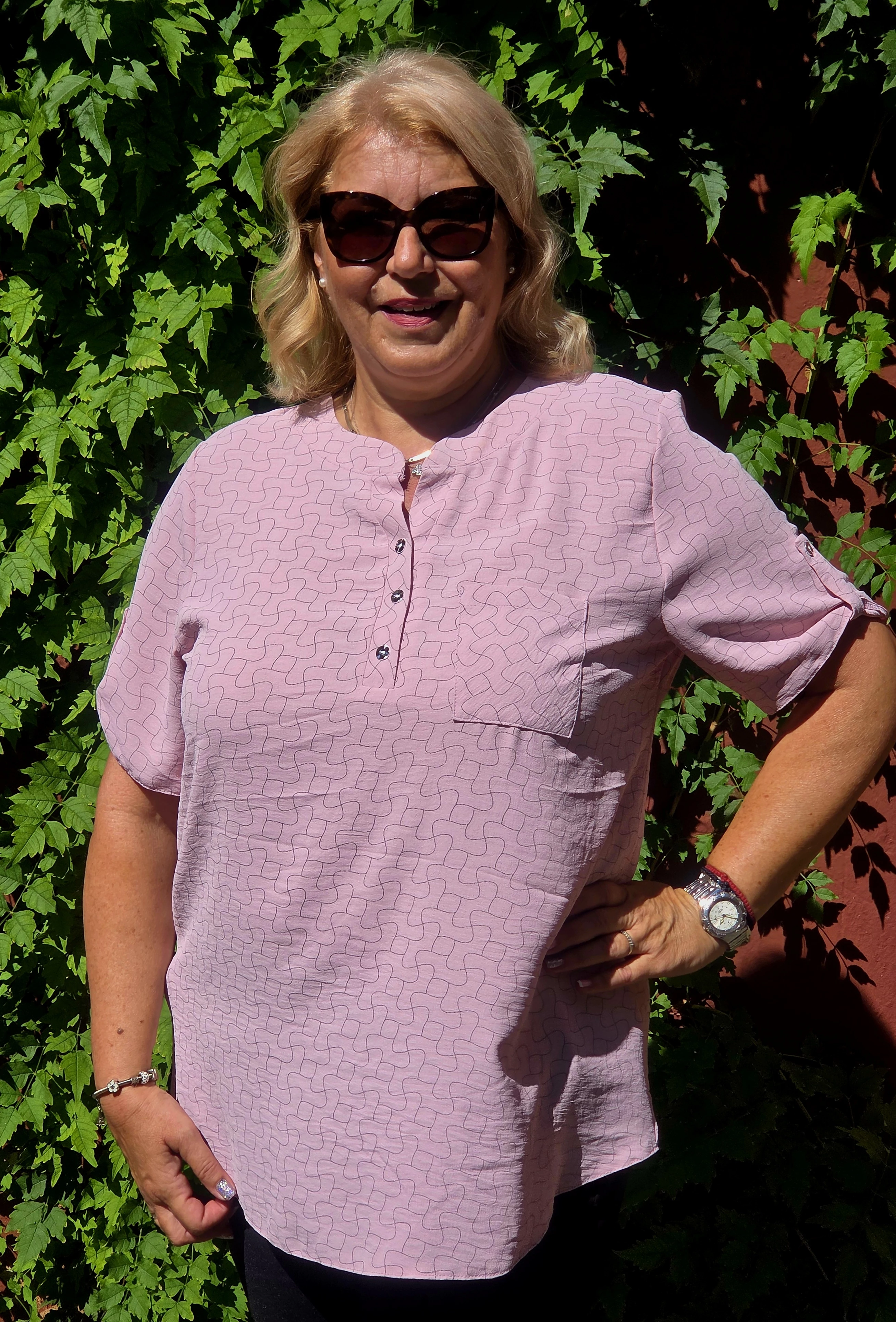 Kellemes viseletű, organikus viscoze anyagból készült, elegáns blúz 3 ezüst gomb díszítéssel.