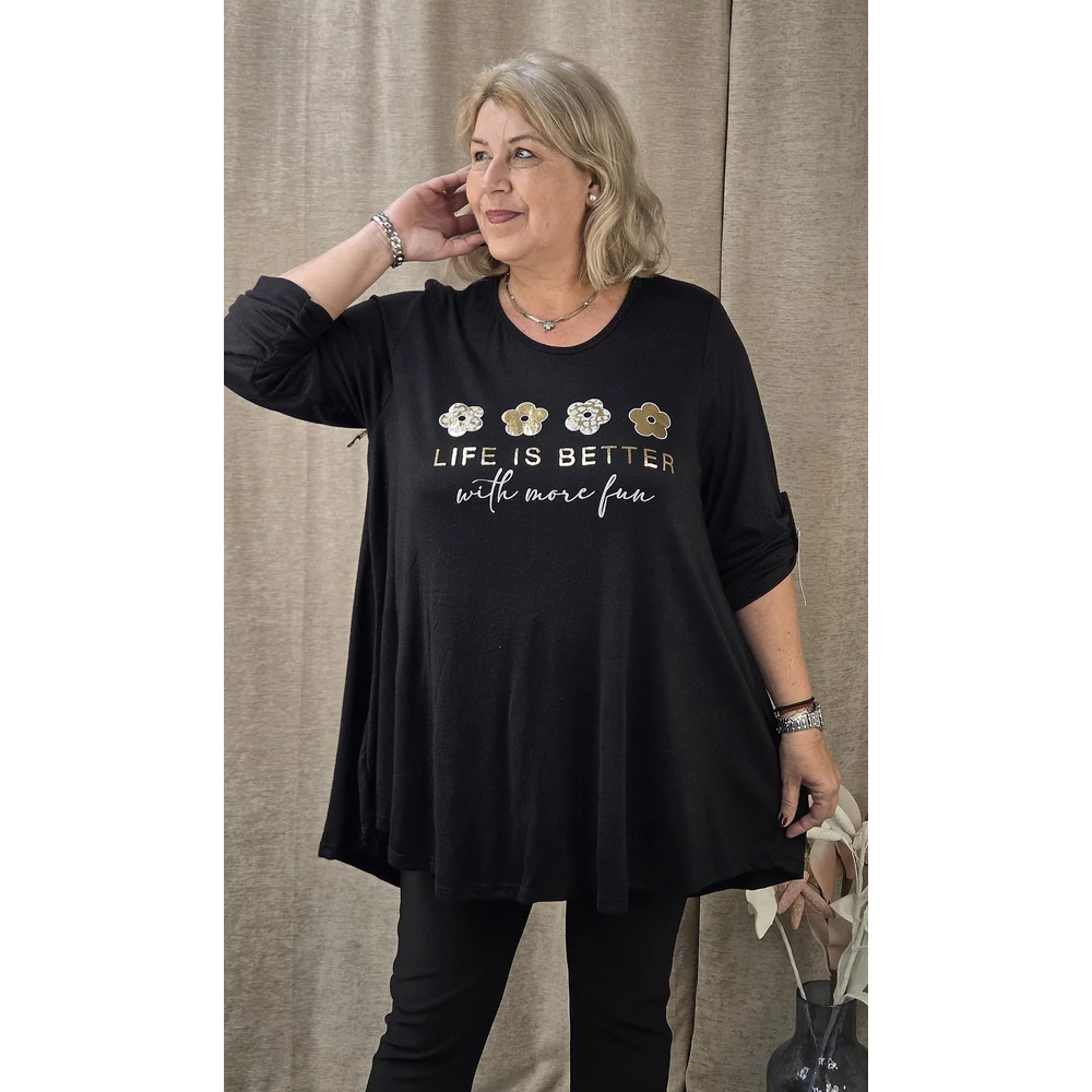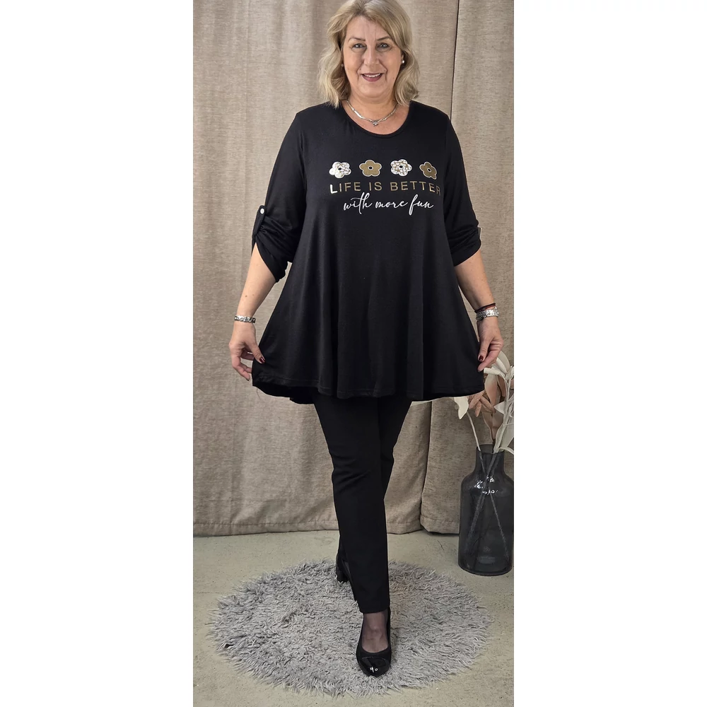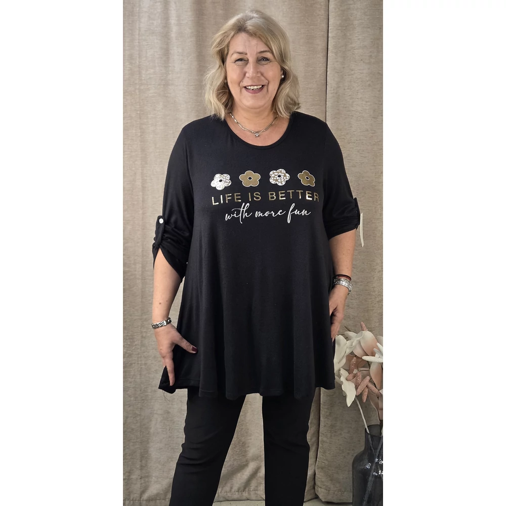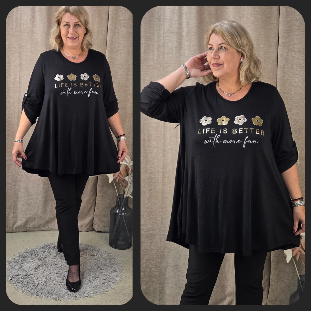 4 ARANY margarétás pulóver - FEKETE - 48-54 méret
