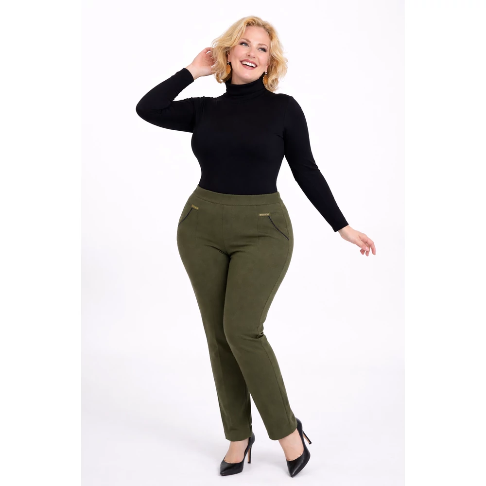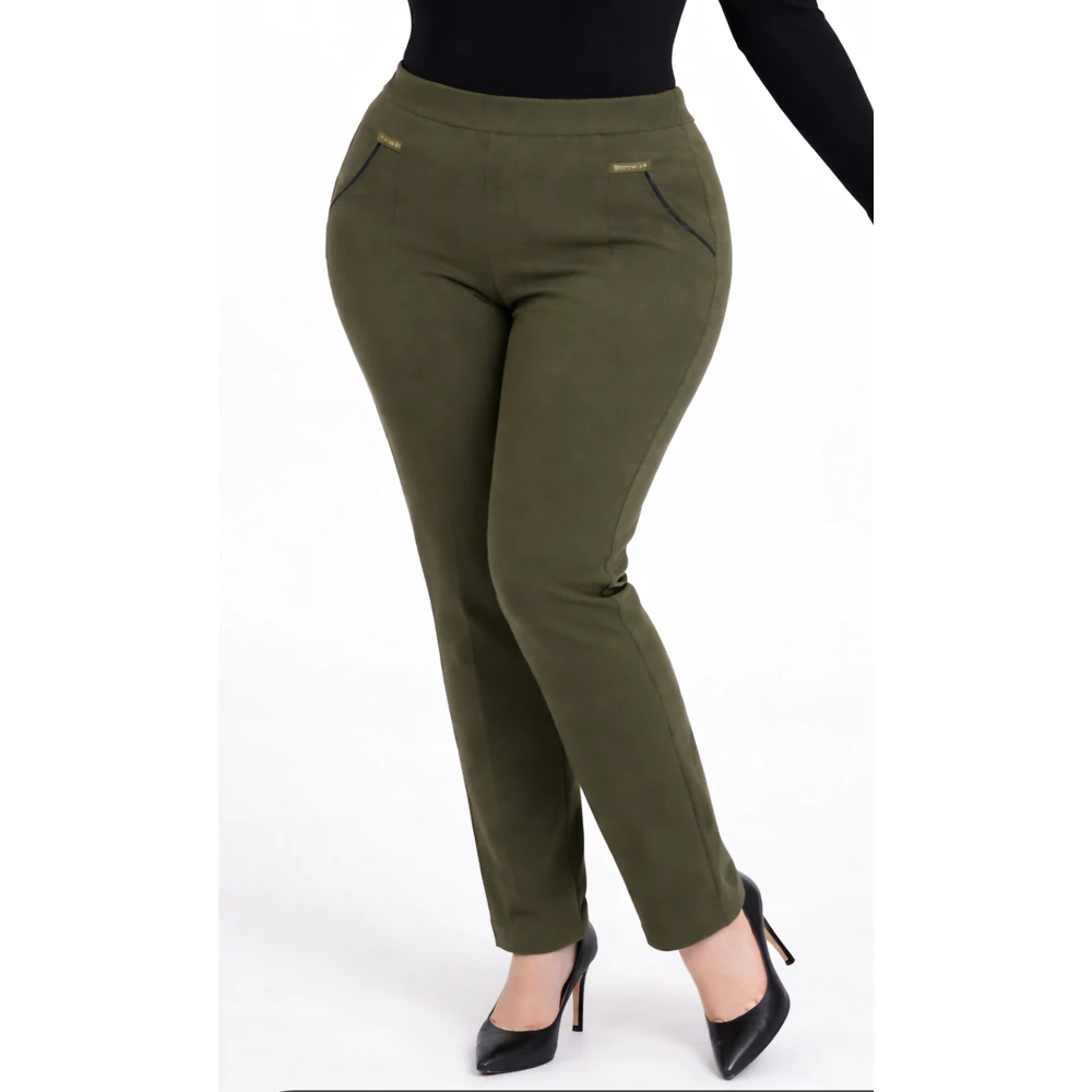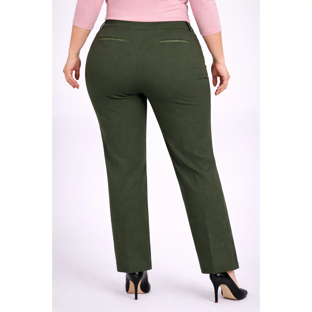 Elegáns, magas minőségű, erdő zöld színű, magad derekú 67% pamutból készült elasztikus nadrág.