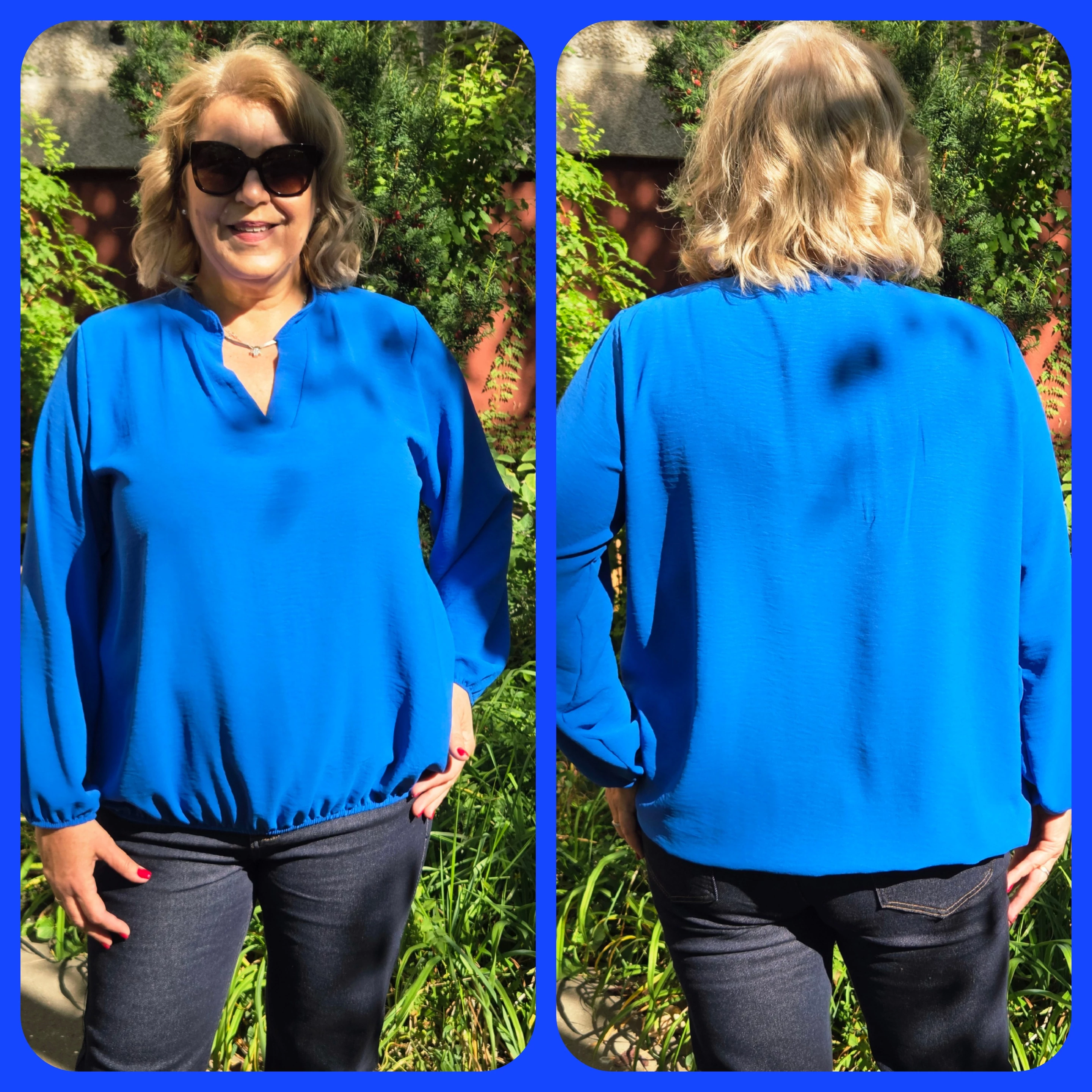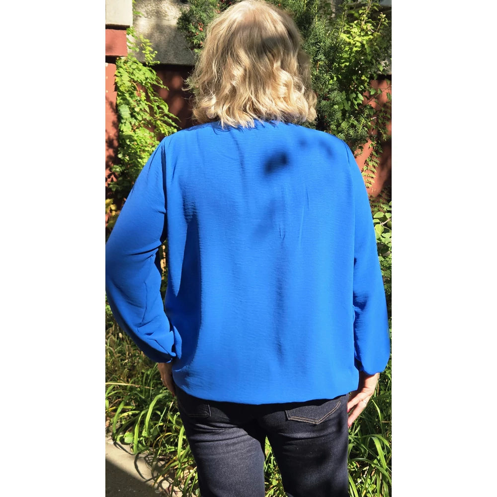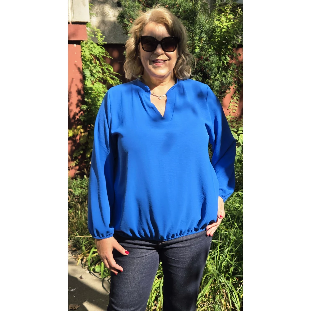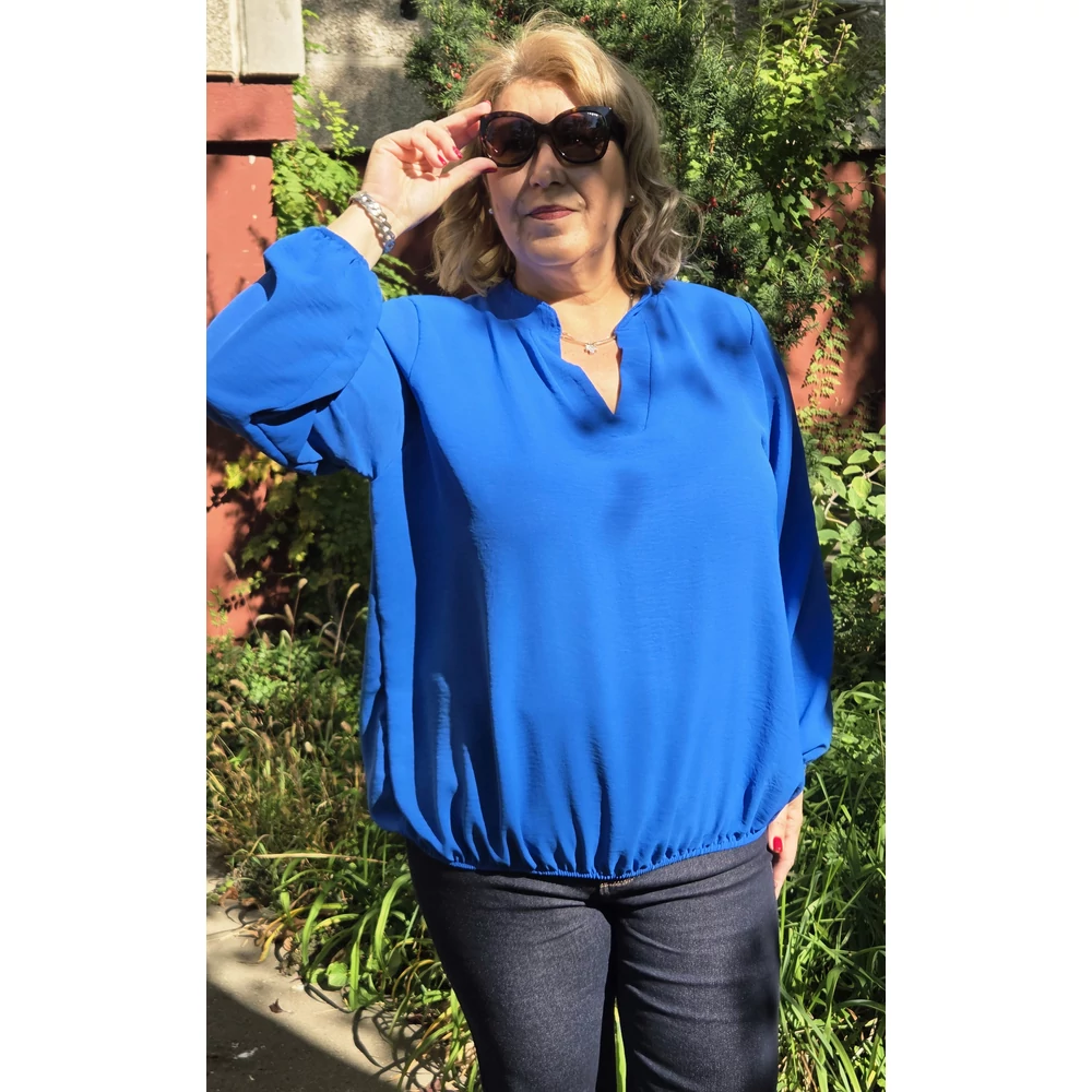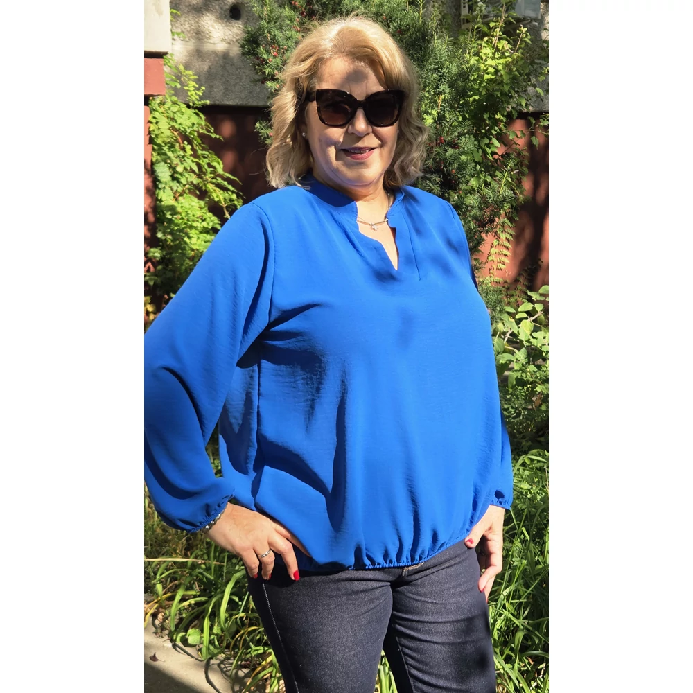 Álló galléros, alul gumis, hosszú ujjas blúz - KIRÁLYKÉK - 44-50-es méret
