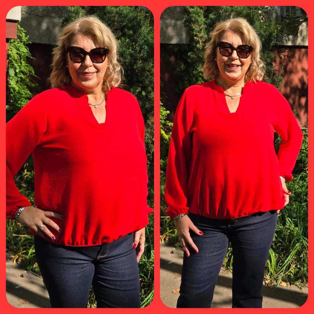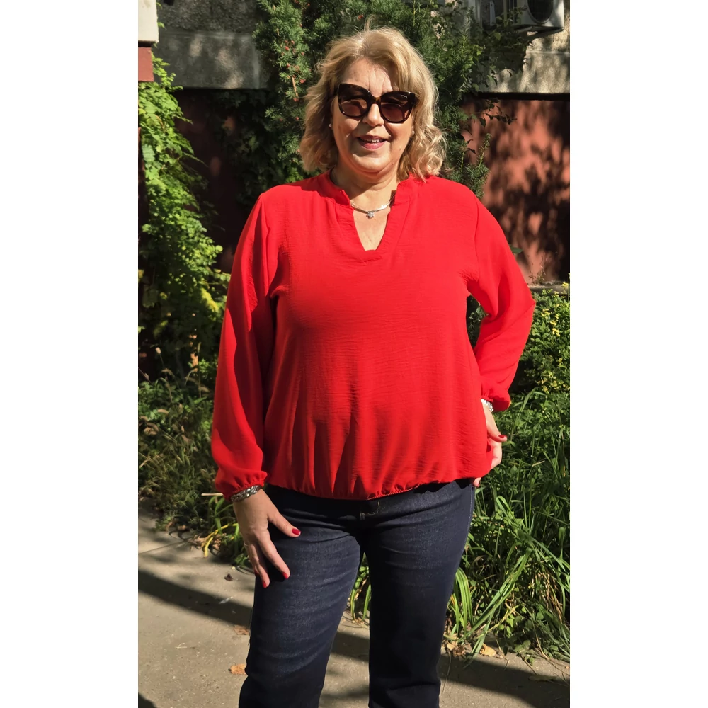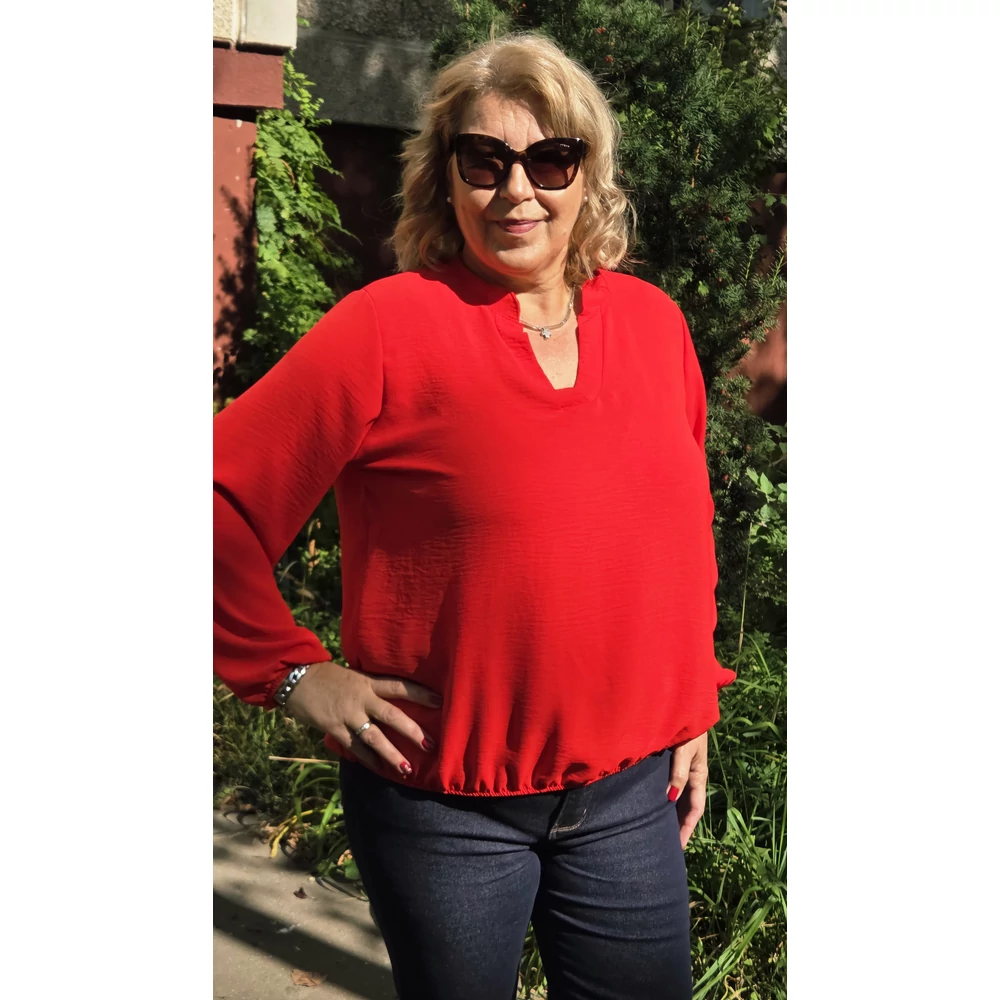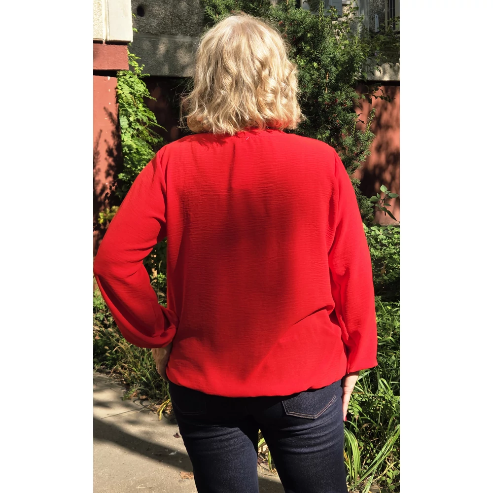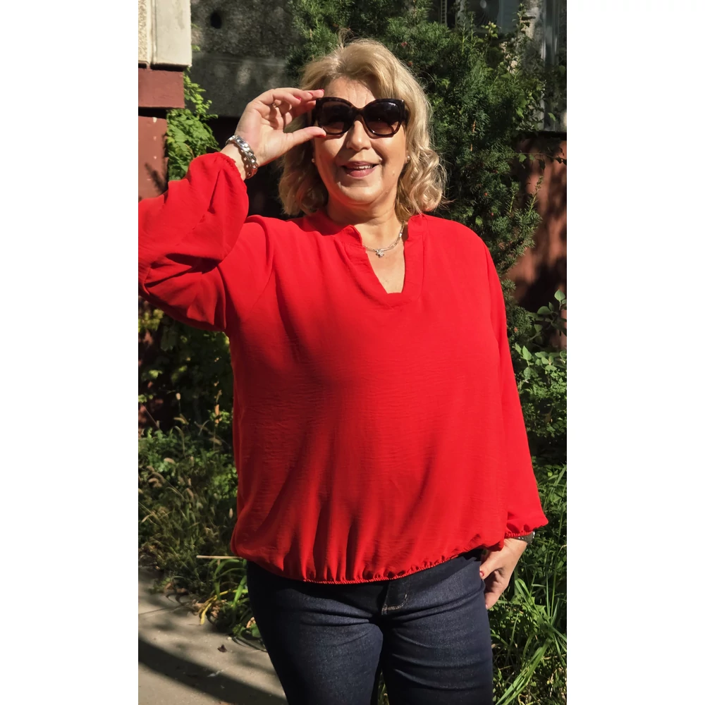 Álló galléros, alul gumis, hosszú ujjas blúz - PIROS - 44-50-es méret