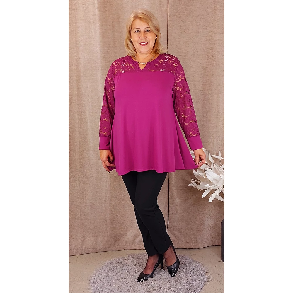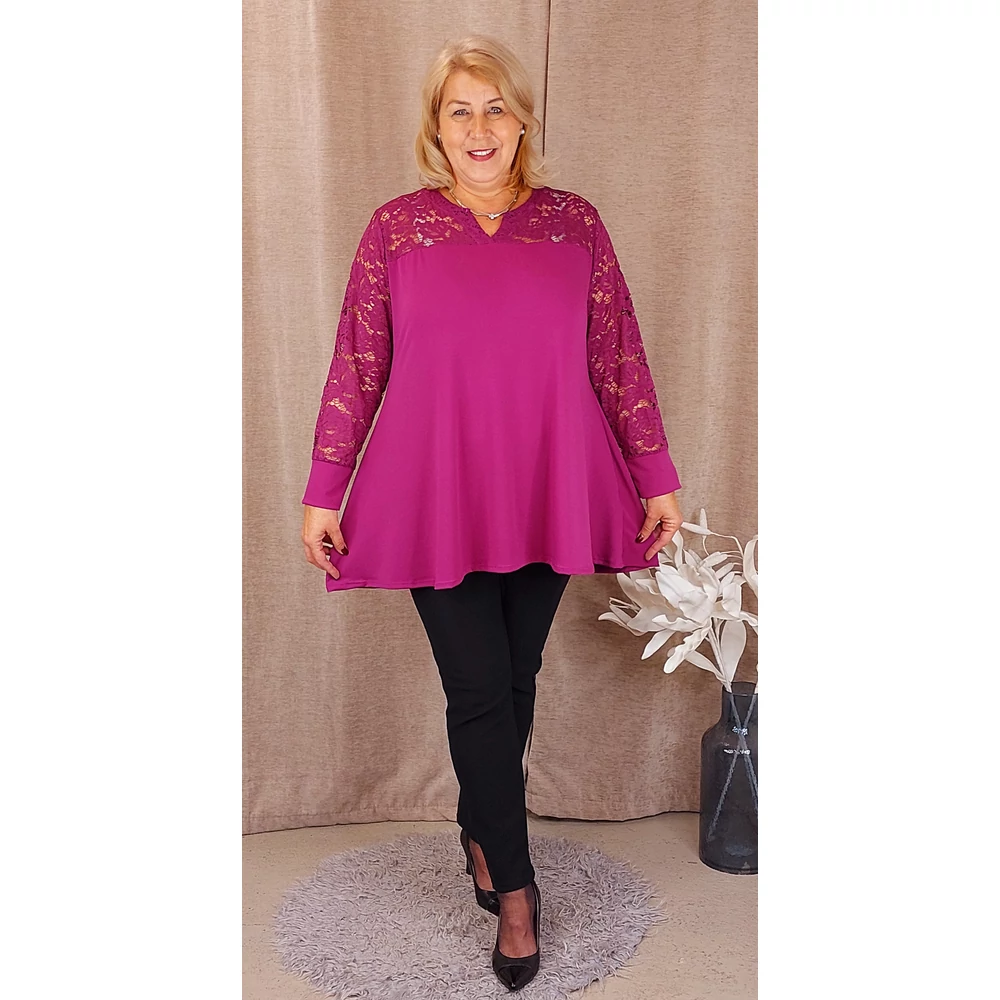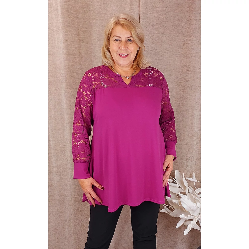 Légáteresztő gyöngyvászon anyagból készült elegáns blúz, színében megegyező csipke variációval.