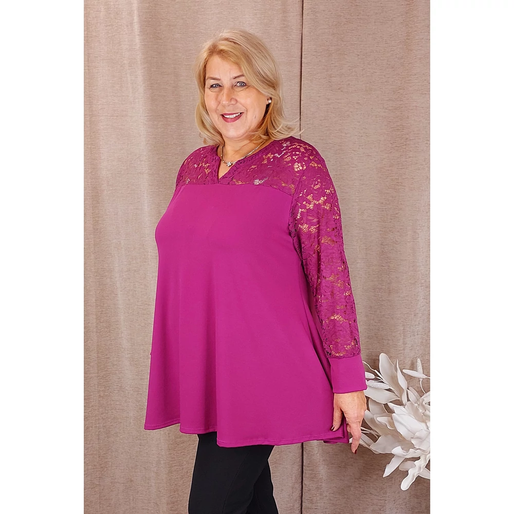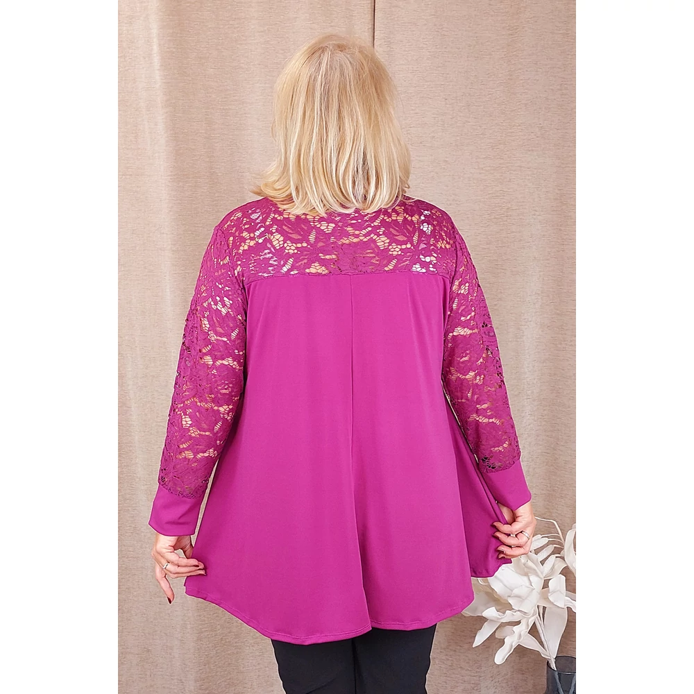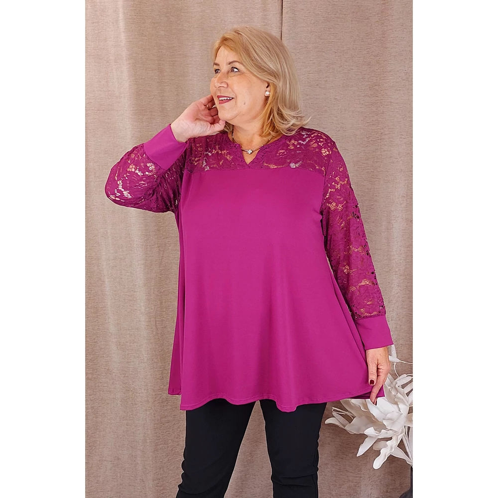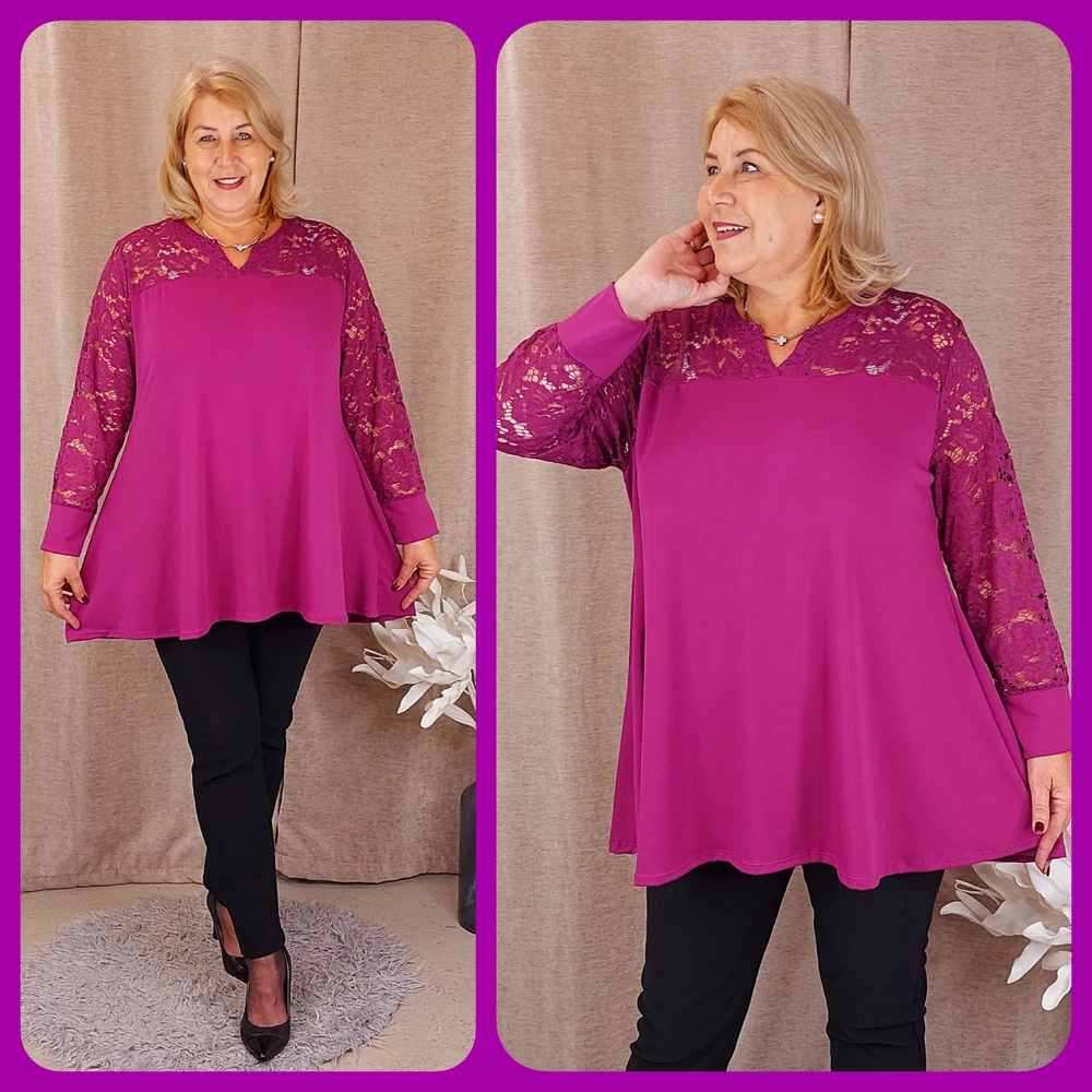 Légáteresztő gyöngyvászon anyagból készült elegáns blúz, színében megegyező csipke variációval.