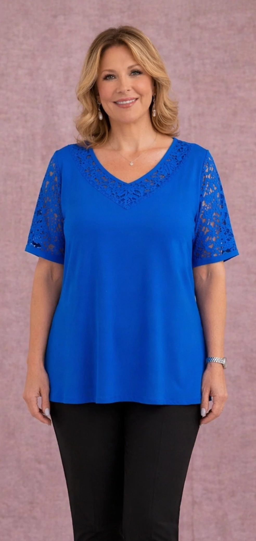 Csipkés ujjú, V-csipke nyakas tunika -KIRÁLYKÉK- 50-60 méret
