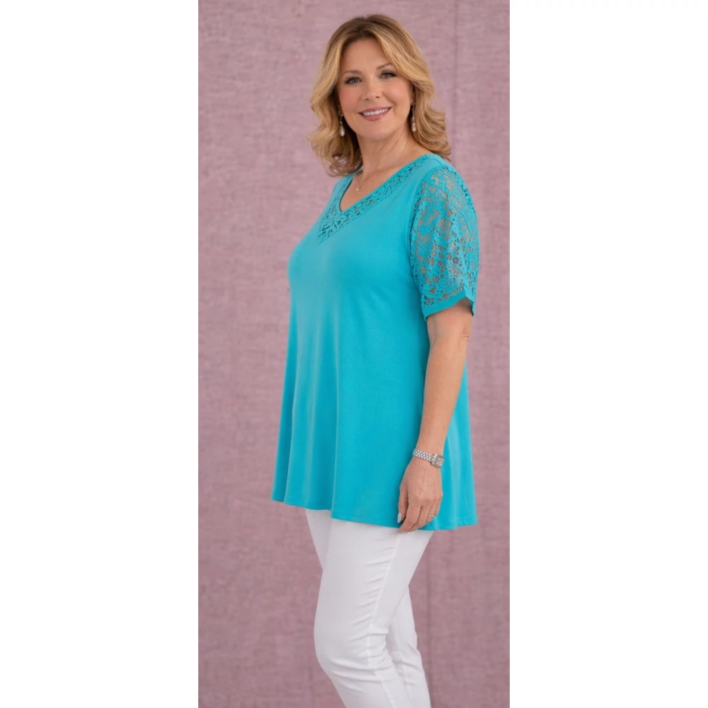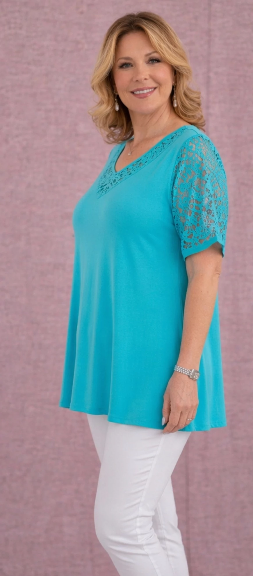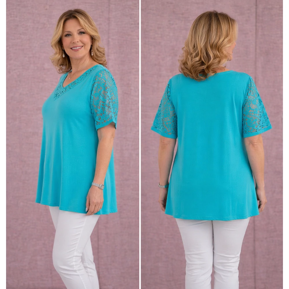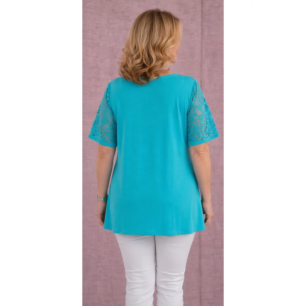 Csipkés ujjú, V-csipke nyakas tunika -TÜRKIZ- 50-60 méret