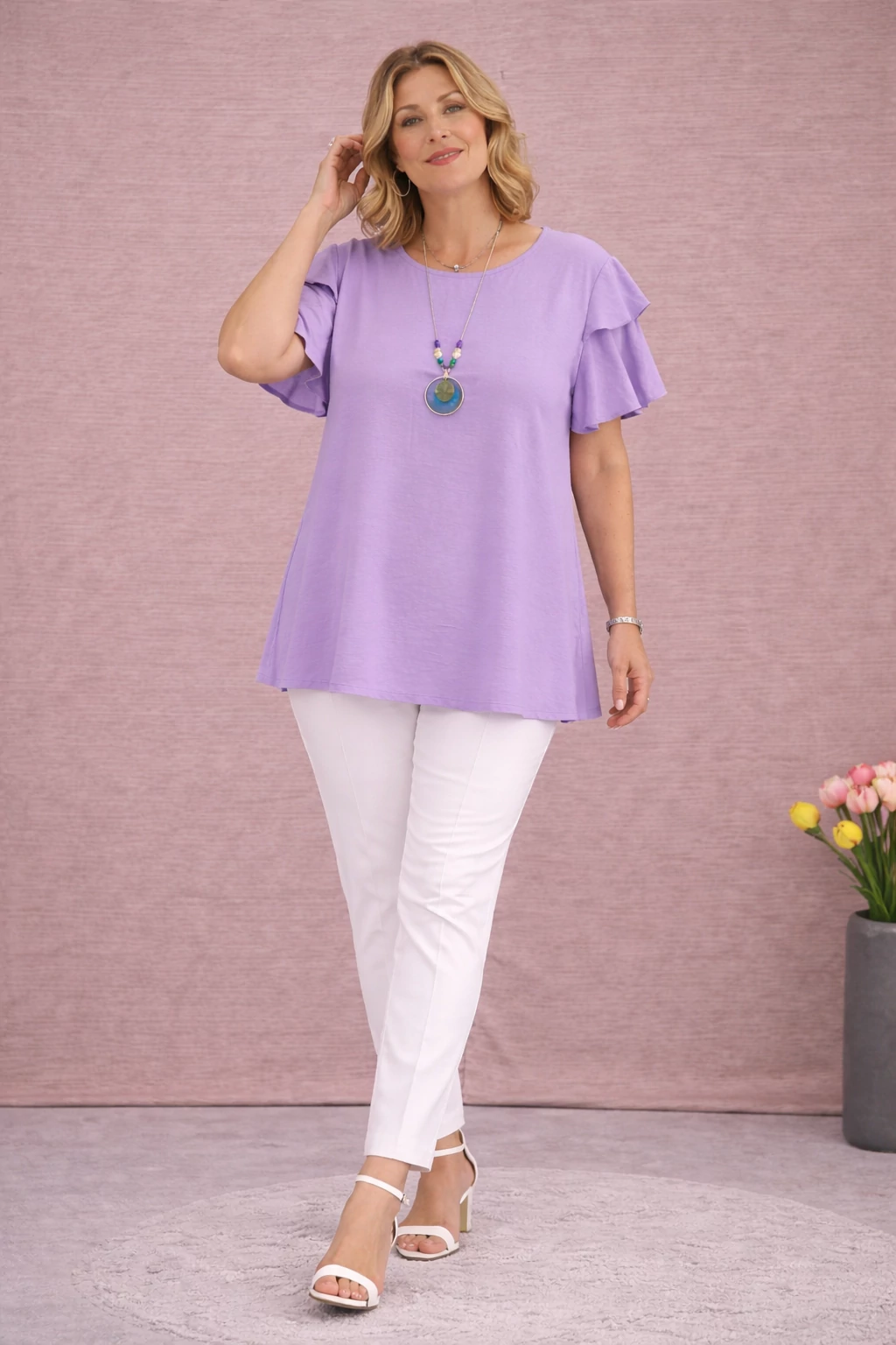 Dupla pillangó ujjas blúz - LEVENDULA- 48-54 méret