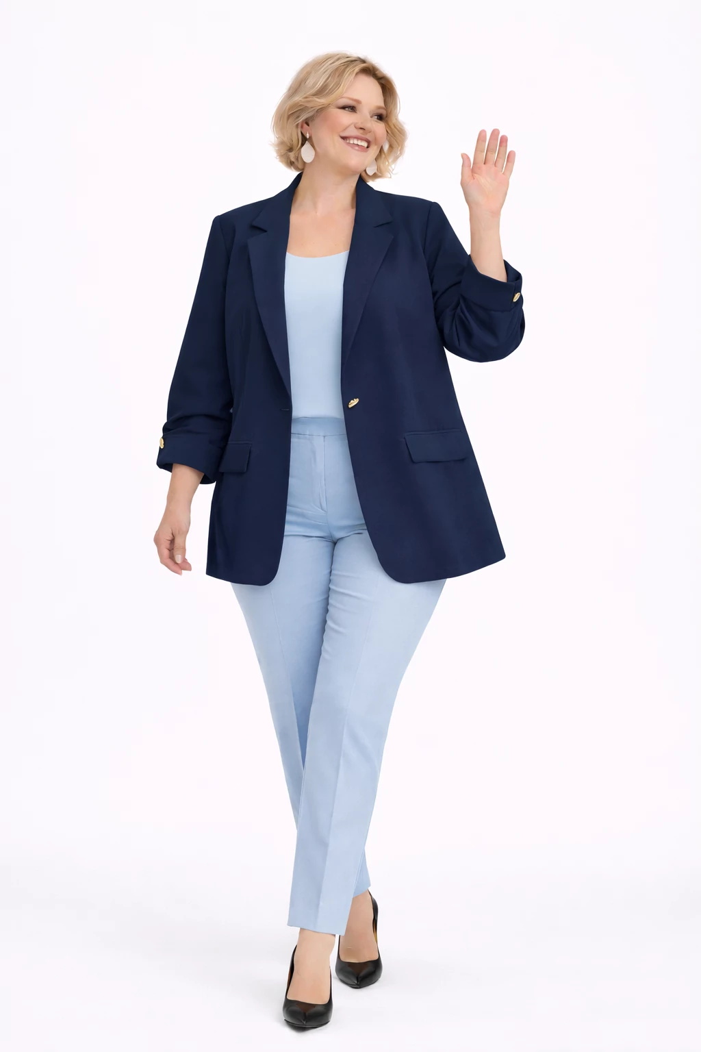 Elegáns, 1 gombos blézer - SÖTÉTKÉK- 48-54 méret