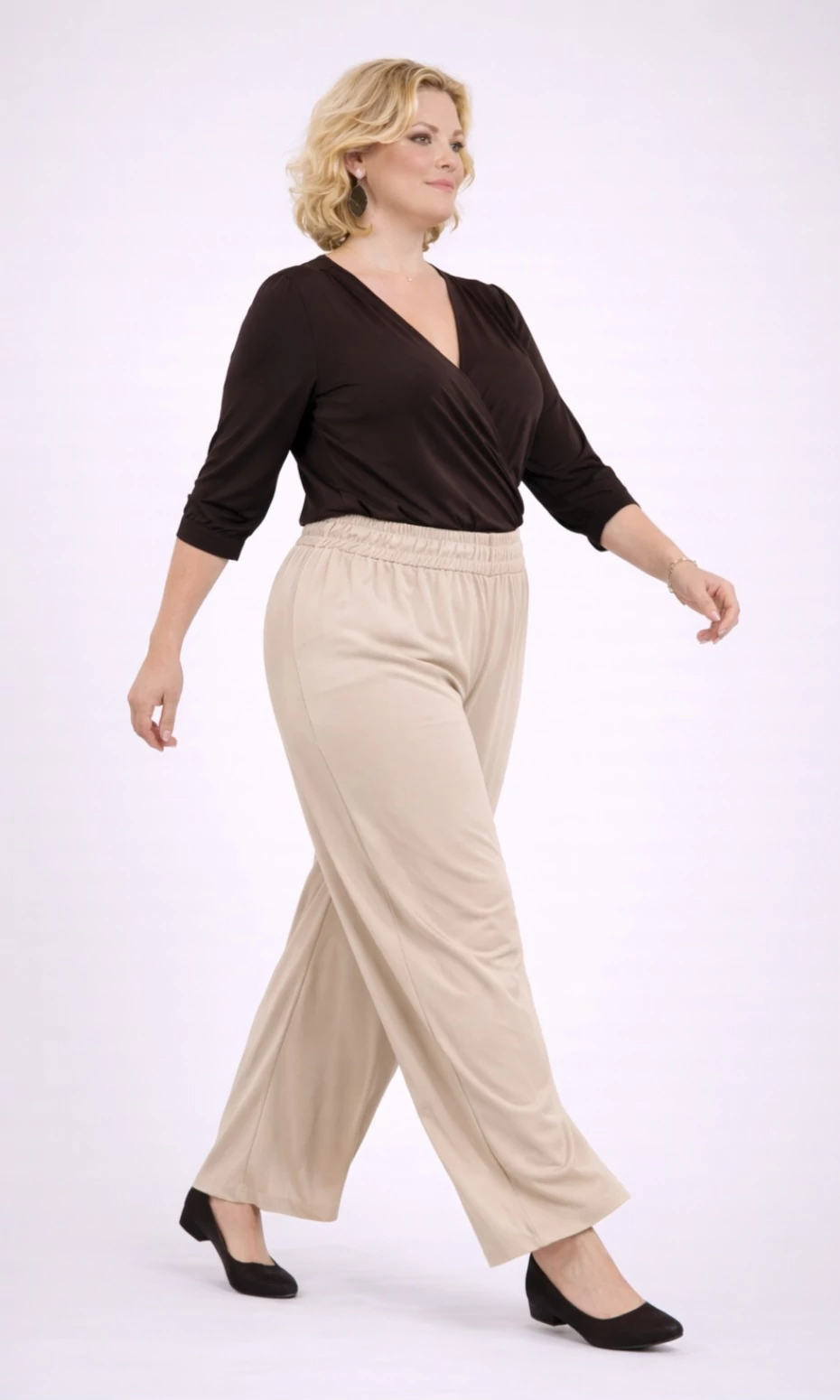 Elegáns, széles szárú nadrág - BÉZS - 46-54 méret