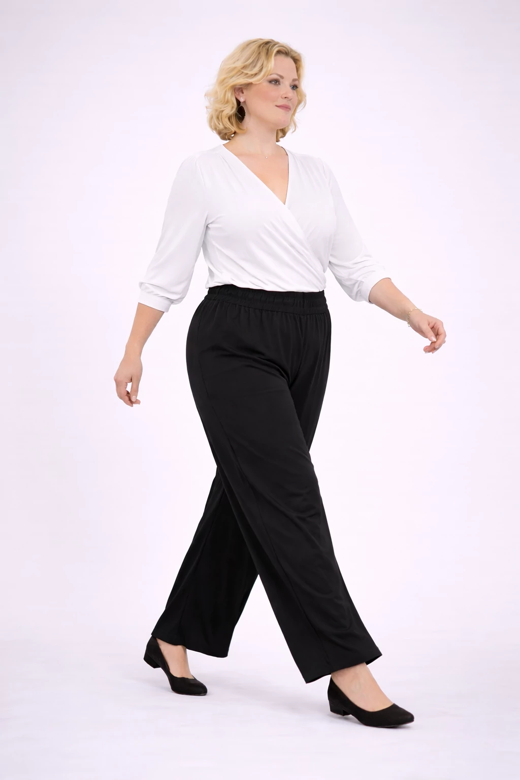 Elegáns, széles szárú nadrág - FEKETE - 46-54 méret