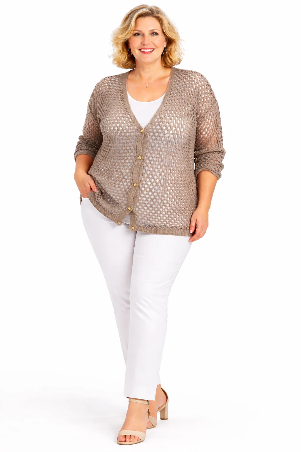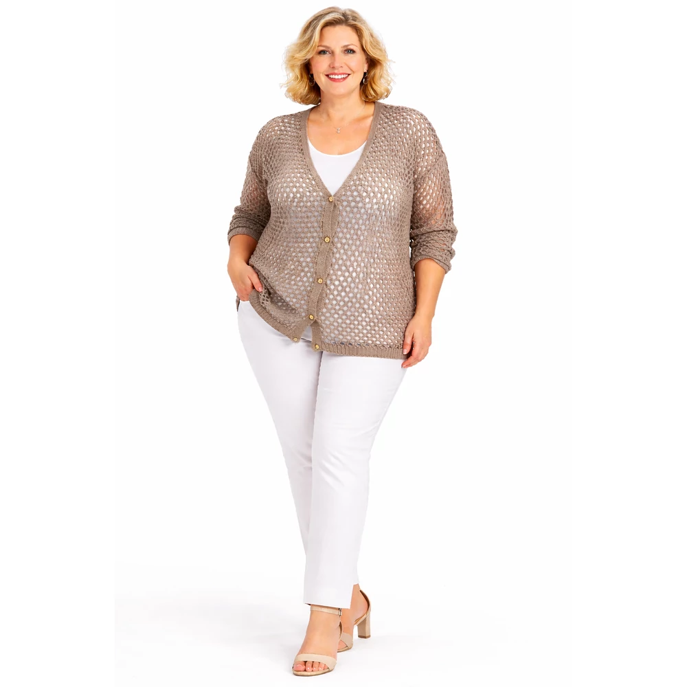 Horgolt, gépi kötésű, végig gombos felkapóka.