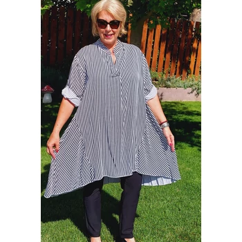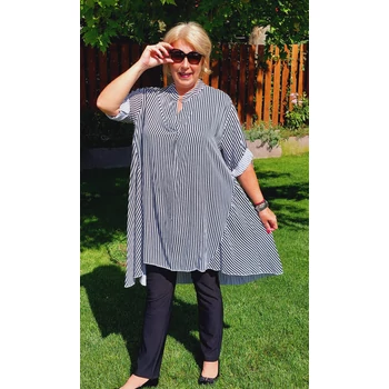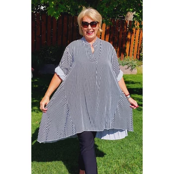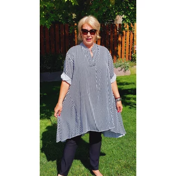 Fenséges megjelenés. Á vonalú, uszályos jellegű, álló galléros ingblúz. Az ujja praktikusan felgombolható. Olasz termék. Hossza elöl: 100 cm Hossza hátul: 112 cm. Egyméretes termék. Ajánljuk 50, 52 és 54-es méretű Hölgyeknek. |