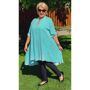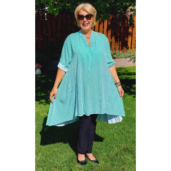 Fenséges megjelenés. Á vonalú, uszályos jellegű, álló galléros ingblúz. Az ujja praktikusan felgombolható. Olasz termék. Hossza elöl: 100 cm Hossza hátul: 112 cm. Egyméretes termék. Ajánljuk 50, 52 és 54-es méretű Hölgyeknek. |