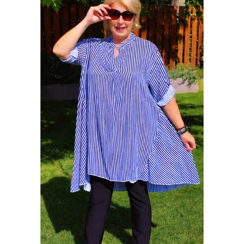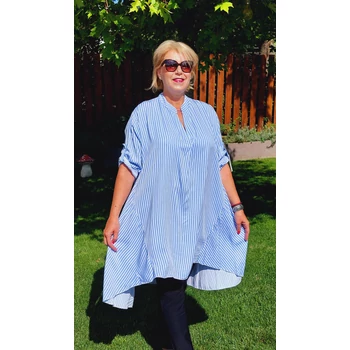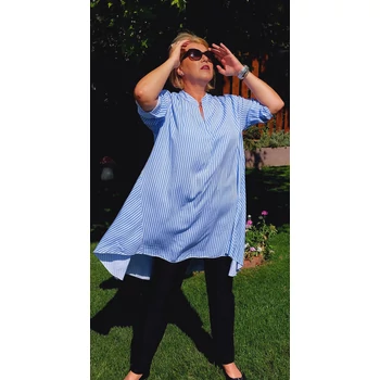 Fenséges megjelenés. Á vonalú, uszályos jellegű, álló galléros ingblúz. Az ujja praktikusan felgombolható. Olasz termék. Hossza elöl: 100 cm Hossza hátul: 112 cm. Egyméretes termék. Ajánljuk 50, 52 és 54-es méretű Hölgyeknek. |