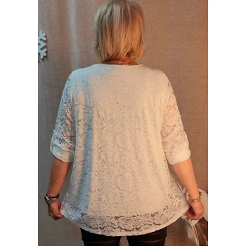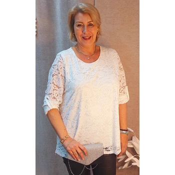 Igazi alkalmi csipke blúz a közelgő ünnepekre! Elegáns virág mintás elasztikus csipke blúz, alul pamut trikóval ellátva. Kerekített nyakú, enyhén A vonalú, hosszú roll up ujjú. Hossza: 72 cm. Egyméretes Olaszországból származó termék, amit ajánlok 46,48 és 50-es méretet viselő és Hölgyeknek! |