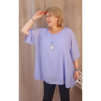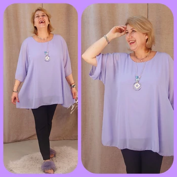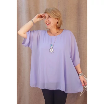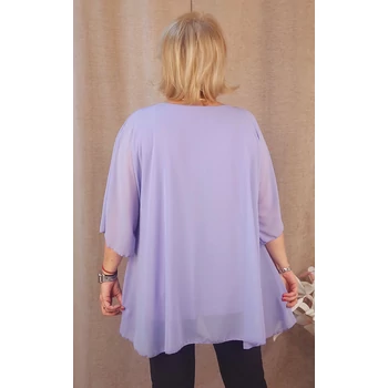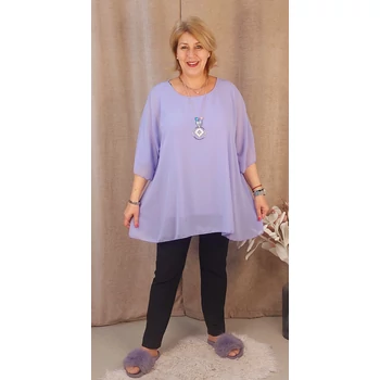 Légiesen elegáns, üdítő tavaszi alkalmi blúz. Lágy esésű, muszlin anyagú dekoratív blúz, alatta pamut trikóval, kerekített nyakkal, ejtett vállakkal és pillangó, 3/4-es ujjakkal. Hossza: 77 cm Egyméretes termék, ajánljuk 48,50,52,54 és 56-os méretűeknek. A divatos nyaklánc a blúz tartozéka. |