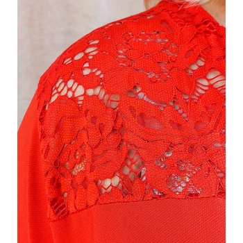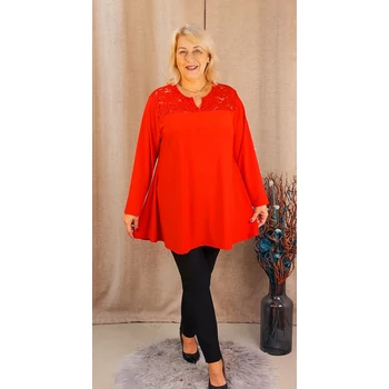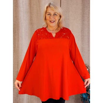 Alkalmi, csipke vállas, hosszú ujjas felsőnk megérkezett kínálatunkba. Meseszép, virág mintás csipke berakással váll részénél és az ujjain. Légáteresztő gyöngyvászon anyagból készült elegáns blúz, színében megegyező csipke variációval. Kerekített nyakmegoldású, diszkrét kis V megoldással, hosszú ujjas, ujjai végén passzéval variált, harang fazonú blúz. Hossza: 85 cm. Magas minőségű, vasalást nem igénylő, Olaszországból származó, egyméretes termékünk! Ajánlom 48,50,52,54,56 és 58-as méretet viselő Hölgyeknek!