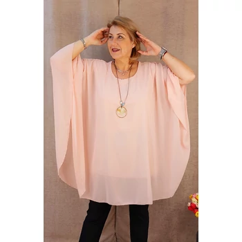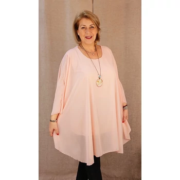 Légiesen elegáns, üdítő tavaszi alkalmi blúz. Lágy esésű, muszlin anyagú dekoratív blúz, alatta pamut trikóval egybevarrva, kerekített nyakkal, rövid ejtett vállakkal és ujjánál tűzött, pillangó jellegű ujjakkal. Hozzá tartozó dekoratív nyaklánc dobja fel ezt az elegáns felsőt. Hossza: 94 cm. Olaszországból származó, enyhe vasalást igénylő blúz. Egyméretes termék, amit ajánlok 48,50,52 és 54-es méretet viselő dekoratív Hölgyeknek! |