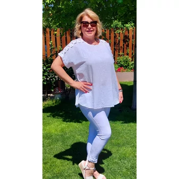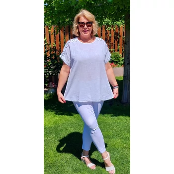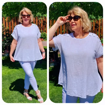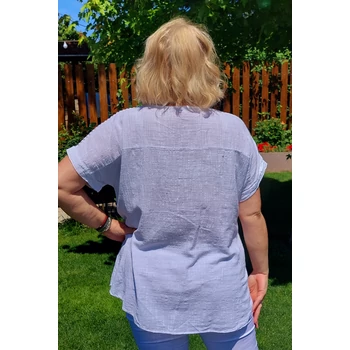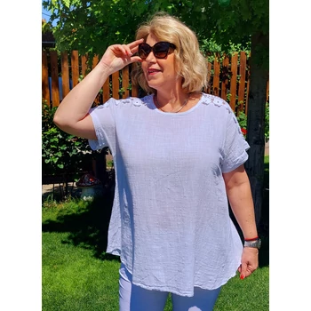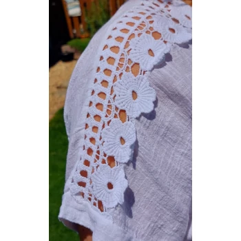 Szellős, kellemes viselet a forró nyári napokon ez a csodás horgolt vállán berakásos lenvászon felső. Kerekített nyakmegoldású, egyenes szabásvonalú, ejtett vállú, rövid denevér ujjas. Vállán 8 centiméteres a színével megegyező, elegáns horgolt berakással. Hossza: 80 cm. Magas minőségű, enyhe vasalást igénylő, egyméretes termékünk, Olaszországból. Ajánlom 48,50,52 és 54-es méretet viselő Hölgy vevőinknek. |