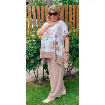 Megérkezett kínálatunkba, a várva várt, alkalmi 2 részes szettünk, mely bármilyen tavaszi és nyári alkalomra elegáns megjelenést adhat. Kellemes viseletű, organikus viszkóz anyagból készült, enyhe vasalást igényel. FELSŐ: Kerekített nyakmegoldású, rövid raglán ujjú melyen a nadrággal megegyező színű, 4 centis díszpasszé, A-vonalú, oldalain diszkréz slicceléssel és szintén a nadrág színével megegyező 11 centis passzé. Hossza: 76 cm. NADRÁG: Dupla soros gumis derekú, bő, egyenes lengő szárú egyszínű. Hossza: 103 cm. Magas minőségű, Olaszországból származó, egyméretes termékünk. Ajánlom 46,48 és 50-es méretet viselő Hölgy vevőinknek. |