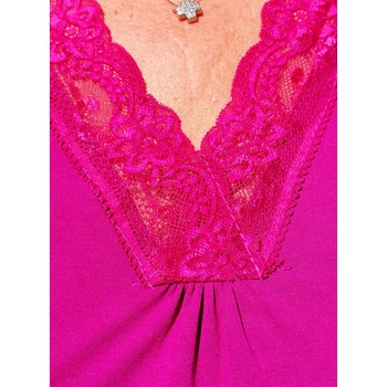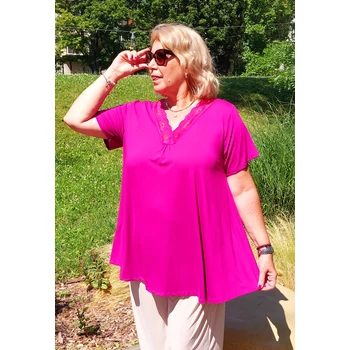 Alkalomra vagy hétköznapra is tökéletesen alkalmas, kellemes viseletű, csinos felső. Elasztikus pamut anyagból készült V-nyakánál, diszkérét kis ráncolással, színében megegyező 5 cm.-es csipke díszítéssel, A vonalú, rövid ujjú felső. A nyakmegoldása, optikailag karcsúsító hatást ad. Hossza: 80 cm. Mell: 132 cm. Csípő: 200 cm. Ujja: 44 cm. Vasalást nem igénylő, magas minőségű, Olaszországból származó, egyméretes termékünk. Ajánlom 50,52,54,56 és 58-as méretet viselő Hölgy vevőinknek! |