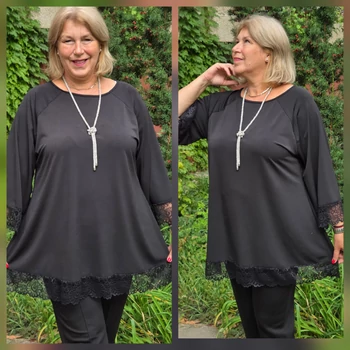Sokak által kedvelt, különleges, lágy esésű, kellemes viseletű, kender kristály anyagból készült elegáns blúz, színében megegyező csipkével dekorált. Kimonó jellegű ujjain és alján fut körbe a csipke dekoráció. Enyhén csónak nyakmegoldású, A vonalú szabást kapott. Elegáns nyaklánccal kiegészítve, dekoratív megjelenést adó örök darabja lehet ruhatárának. Mell: 140 cm. Csípő: 176 cm. Hossza: 87 cm. Magas minőségű, vasalást nem igénylő, egyméretes termékünk Olaszországból érkezett. A fotón látható nyaklánc, csak ötletet adó kiegészítő. Ajánlom 48,50,52 és 54-es méretet viselő Hölgy vevőinknek. |