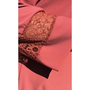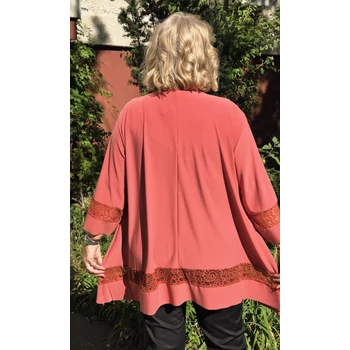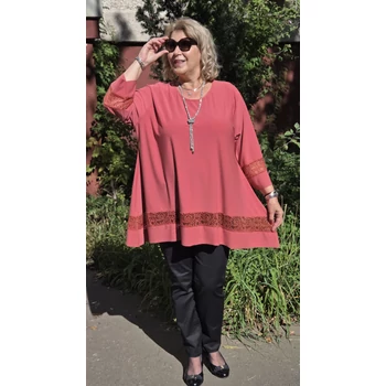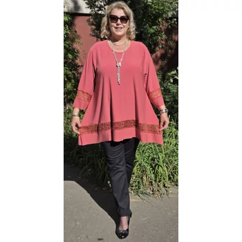 Sokak által kedvelt, különleges, lágy esésű, kellemes viseletű, kender kristály anyagból készült elegáns blúz, színében megegyező csipkével dekorált. Kimonó jellegű ujjain és alján, betét dekorációs megoldással fut körbe a csipke dekoráció. Enyhén csónak nyakmegoldású, A vonalú szabást kapott. Elegáns nyaklánccal kiegészítve, dekoratív megjelenést adó örök darabja lehet ruhatárának. Mell: 140 cm. Csípő: 176 cm. Hossza: 87 cm. Magas minőségű, vasalást nem igénylő, egyméretes termékünk Olaszországból érkezett. A fotón látható nyaklánc, csak ötletet adó kiegészítő. Ajánlom 48,50,52 és 54-es méretet viselő Hölgy vevőinknek. |