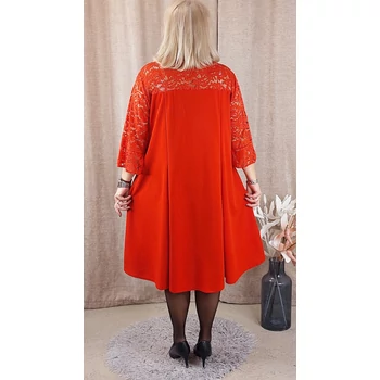 Meseszép, alkalmi egyberuha, a közelgő ünnepekre vagy bármilyen alkalomra, céges rendezvényekre. Kellemes viseletű, gyöngyvászon anyagból készült, csinosított hosszanti mellvarrással készült, színével megegyező, virág mintás, elegáns csipke vállakkal háromnegyedes ujjakkal és 9 centis harang alakú fodorral. Nyaki résznél diszkrét V kivágással, harang szoknyarésszel. Hossza: 110 cm. Mell: 140 cm. Csípő: 160 cm. Magas minőségű, vasalást nem igénylő, Olaszországból származó, egyméretes termékünk! Ajánlom 50,52,54 és 56-os méretet viselő, igényes Hölgy vevőinknek!
