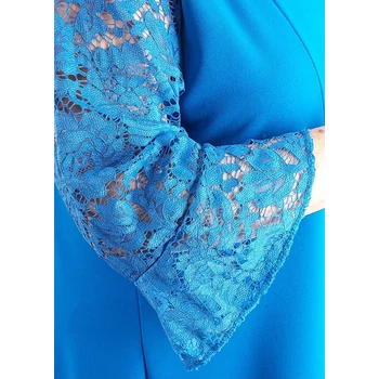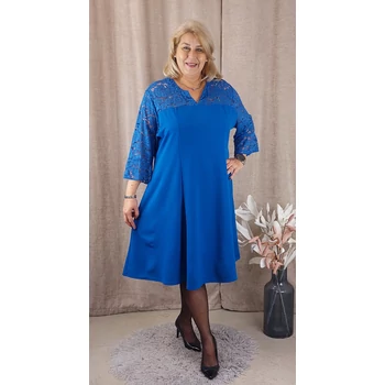 Meseszép, alkalmi egyberuha, a közelgő ünnepekre vagy bármilyen alkalomra, céges rendezvényekre. Kellemes viseletű, gyöngyvászon anyagból készült, csinosított hosszanti mellvarrással készült, színével megegyező, virág mintás, elegáns csipke vállakkal háromnegyedes ujjakkal és 9 centis harang alakú fodorral. Nyaki résznél diszkrét V kivágással, harang szoknyarésszel. Hossza: 110 cm. Mell: 140 cm. Csípő: 160 cm. Magas minőségű, vasalást nem igénylő, Olaszországból származó, egyméretes termékünk! Ajánlom 50,52,54 és 56-os méretet viselő, igényes Hölgy vevőinknek!