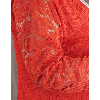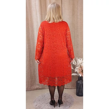 Elegáns, virág mintás csipke egyberuha. Kerek nyakmegoldású, hosszú ujjas, magas minőségű elasztikus csipkéből készült, enyhén A szabásvonalú csipke ruha. Alatta színével megegyező, elasztikus pamut megoldással. Hossza: 115 cm. Mell: 140 cm. Csípő: 140 cm. Magas minőségű, Olaszországból származó, alkalmi elegáns, egyméretű termékünk. Ajánlom 50,52,54 és 56-os méretet viselő Hölgy vevőinknek. |
