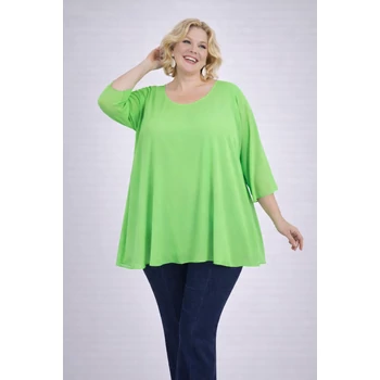 Légiesen elegáns, üdítő tavaszi alkalmi blúz. Lágy esésű, muszlin anyagú dekoratív blúz, alatta pamut trikóval, kerekített nyakkal, ejtett vállakkal és pillangó, 3/4-es ujjakkal. Hossza: 77 cm Egyméretes termék, ajánljuk 48,50,52,54 és 56-os méretűeknek. A divatos nyaklánc a blúz tartozéka. |