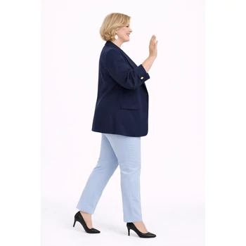 Viscose anyagból készült, elegáns egyenes szabásvonalú blézer. Elején mell alatt egy gombbal zárható. Elegáns hajtókája van, továbbá elől mindkét oldalon díszzsebbel van ellátva. Ujja roll-up ujjként is felhajtható, de akár le is hajtható, így hosszú ujjú blézerként is tökéletes megjelenést ad. Hossza: 74 cm. Magas minőségű, Olaszországból származó, vasalást nem igénylő, kézi mosást javasolt egyméretes termékünk. Ajánlom 48,50,52 és 54-es méretű, elegáns termékeket kedvelő Hölgy vevőinknek! |