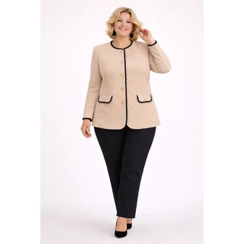 Válassz kényelmes pamut és elegáns viszkóz anyagokból készült alkalmi viseletet! Kerekített nyakkivágású, hosszú ujjú, egyenes szabású alkalmi blézer,amely előnyösen takarja a popsit is. Elején 5 szépen kidolgozott gombbal zárható, ezekkel a gombokkal lett kiemelve az elején található díszzseb is. Igazán különlegessé teszi a szegélyeken végigfutó fekete kiemelés. Hossza: 62 cm. |