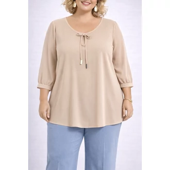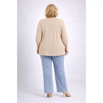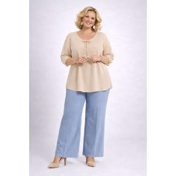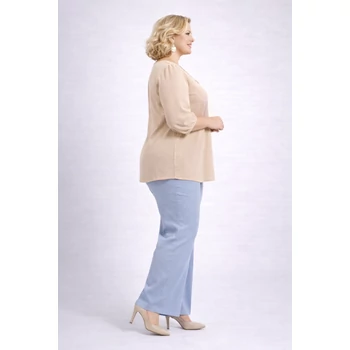 Elegáns, alkalmi blúz, mely egy igényes Hölgy ruhatárából nem hiányozhat. Kerekített nyak részénél, fémvégű díszmegkötővel, ujja muszlin vékony passzéval. Lágyeséső, egyenes szabású. Vasalást nem igénylő viszkóz anyag. Hossza 75 cm. |