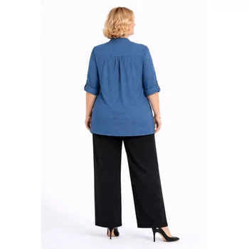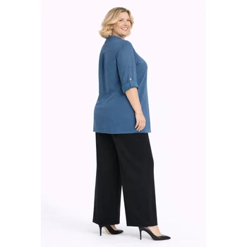 Álló galléros, organikus viszkózból készült elegáns blúz. Elöl 3 gomb díszíti. Felgombolható rövid ujja van. Hátán középen ráhajtásos megoldást kapott. Alja kerekített. Hossza: 90 cm. Egyméretes Olaszországból származó minőségi termékünk. Ajánlom 52, 54,56,58-as méretet viselő vásárlóinknak. |