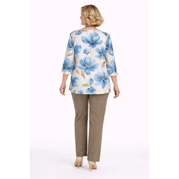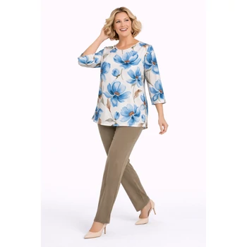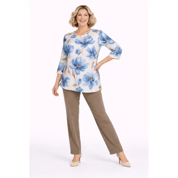 Rugalmas jégselyem anyagból készül vidám szín összeállítású virág mintás felső. Kerek nyak kivágással rendelkezik. Ujja könyék alá érő passzés ujj, az ujjhossz: 47 cm. Hossza: 72 cm. Egyméretes minőségi termékünk, melyet 52, 54,56-s méretet viselő Vásárlóinknak ajánljuk. |