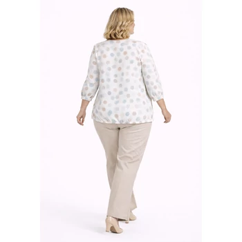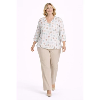 Rugalmas jégselyem anyagból készül lágy szín összeállítású mintás felső. V -nyak kivágással előnyösen nyújtja az alakot. Ujja hosszú ujj. Alján gumírozott, mandzsettás és ráncolt, így jól takarja a hasi részt. Hossza: 74 cm. Egyméretes minőségi termékünk, melyet 50, 52, 54-es méretet viselő Vásárlóinknak ajánljuk. |