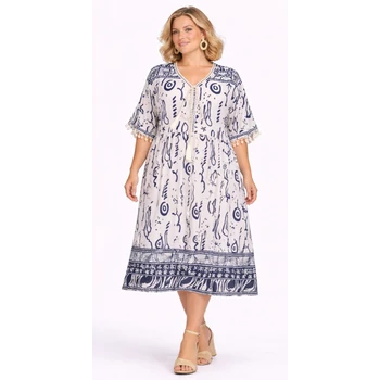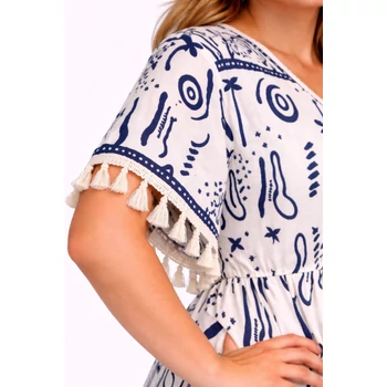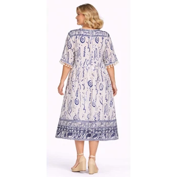 Habkönnyű, pamut vászon/ flokon anyagból készült, igazi nyári tervezett, egyberuha. Különleges mintával a nyár egy csodás darabja lesz! V-nyakú, mell alatt húzott ezáltal kiemeli a dekoltázst. T ujjas , rövid ujjai végén bojtok díszítik - teszik igazán különlegessé. Hossza: 125 cm Magas minőségű, vasalást igénylő, Olaszországból származó, egyméretes termékünk. Ajánlom 54,56,58,60,62-os méretet viselő Hölgy vevőinknek! |