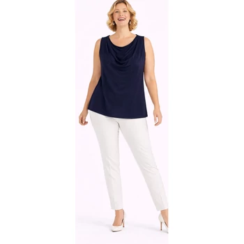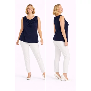 Jégselysem anyagú, hosszú fazonú ujjatlan blúz. Lágyan leomló ejtett nyakú ujjatlan nyári felső. A dekoltázst körbe öleli. Blézer vagy kardigán alá is szuper választás. Hossza: 75 cm. Egyméretes vasalást nem igénylő, Olaszországból származó termékünk. |