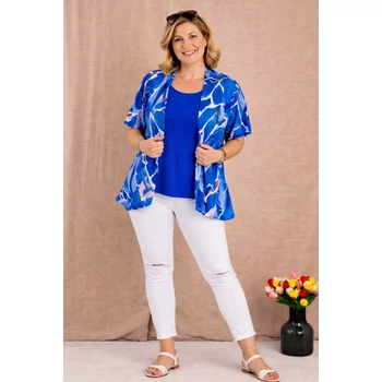 Alkalmi, elegáns megjelenést adó NYÁRI felsőn megérkezett a készletünkbe. Lágy esésű, kellemes viseletű, gyöngyvászon anyagból készült, kettő az egyben hatást adó felső. Kerekített nyakú trikó jellegű alsó, sálgalléros kreppelt blézer hatású felsővel, összevarrt megoldással, rövid ujjakkal. A trikó egyenes szabásvonalú, viszont a rávarrt felső rész A vonalú szabást kapott. A trikó hossza: 70 cm. A blézer hossza: 78 cm. Magas minőségű, vasalást nem igénylő, egyméretes termékünk Olaszországból érkezett. Ajánlom 46,48,50,52,54-es méretet viselő Hölgy vevőinknek. |
