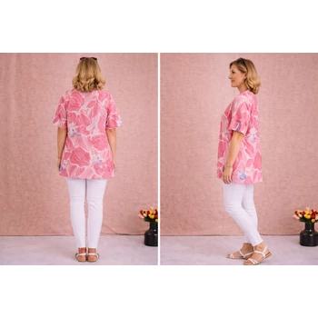 Alkalmi, elegáns megjelenést adó NYÁRI felsőn megérkezett a készletünkbe. Lágy esésű, kellemes viseletű, gyöngyvászon anyagból készült, kettő az egyben hatást adó felső. Kerekített nyakú trikó jellegű alsó, sálgalléros kreppelt blézer hatású felsővel, összevarrt megoldással, rövid ujjakkal. A trikó egyenes szabásvonalú, viszont a rávarrt felső rész A vonalú szabást kapott. A trikó hossza: 70 cm. A blézer hossza: 78 cm. Magas minőségű, vasalást nem igénylő, egyméretes termékünk Olaszországból érkezett. Ajánlom 46,48,50,52,54-es méretet viselő Hölgy vevőinknek. |