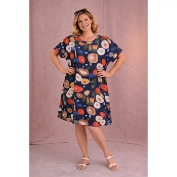 Szellős, kellemes viseletű, pamut flokon anyagból készült csodás nyári ruha, vagy tunika. Alap színén, Aquarell jellegű színes mesevirág mintákkal. Kerekített nyakú, ejtett vállú, rövid ujjas, enyhén buborék fazonú. Viselhető ruhaként vagy színes leggigsel tunikaként. Hossza: 100cm. Mell: 77 cm. Csípő: 80 cm. Enyhe vasalást igénylő, magas minőségű, egyméretes termékünk Olaszországból. Ajánlom 48,50,52 és 54-es méretet viselő Hölgyeknek! |