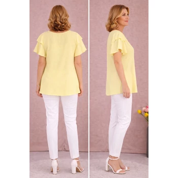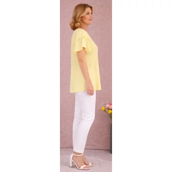 Kellemes viseletű, lágy esésű, organikus viszkóz anyagból készült, csinos nyári blúz divatos pillangó ujjakkal. Kerekített nyakmegoldású, A vonalú, enyhe vasalást igénylő, jól variálható blúz. Imádni fogod,mert divatos színeiben viselheted a hétköznapokon vagy alkalomra is. Hossza: 80 cm. Magas minőségű, Olaszországból származó egyméretes termékünk. 48, 50, 52 és 54-es méretet viselő Hölgy vevőinknek ajánlom! |