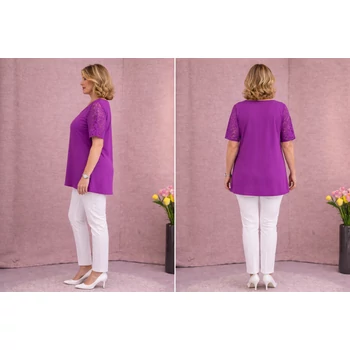 Elasztikus viszkóz anyagból készült igazán különleges A-vonalú tunika. Dekoltázsnál gondosan kidolgozott csipkeberakás található, amely a tekintetet szinte oda vonza. Ugyanez a csipke minta köszön vissza az ujjain is, ezzel téve igazán különlegessé. Kellemes viseletű praktikus felső vagy tunika bármilyen tavaszi és nyári alkalomra elegáns megjelenést adhat. Hossza: 87 cm. Magas minőségű, Olaszországból származó, egyméretes termékünk. Ajánlom 50, 52, 54, 56, 58, 60-as méretet viselő Hölgy vevőinknek. |