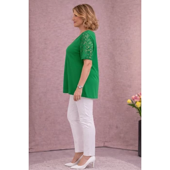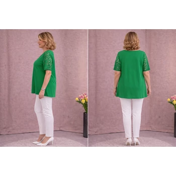 Elasztikus viszkóz anyagból készült igazán különleges A-vonalú tunika. Dekoltázsnál gondosan kidolgozott csipkeberakás található, amely a tekintetet szinte oda vonza. Ugyanez a csipke minta köszön vissza az ujjain is, ezzel téve igazán különlegessé. Kellemes viseletű praktikus felső vagy tunika bármilyen tavaszi és nyári alkalomra elegáns megjelenést adhat. Hossza: 87 cm. Magas minőségű, Olaszországból származó, egyméretes termékünk. Ajánlom 50, 52, 54, 56, 58, 60-as méretet viselő Hölgy vevőinknek. |