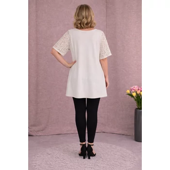 Elasztikus viszkóz anyagból készült igazán különleges A-vonalú tunika. Dekoltázsnál gondosan kidolgozott csipkeberakás található, amely a tekintetet szinte oda vonza. Ugyanez a csipke minta köszön vissza az ujjain is, ezzel téve igazán különlegessé. Kellemes viseletű praktikus felső vagy tunika bármilyen tavaszi és nyári alkalomra elegáns megjelenést adhat. Hossza: 87 cm. Magas minőségű, Olaszországból származó, egyméretes termékünk. Ajánlom 50, 52, 54, 56, 58, 60-as méretet viselő Hölgy vevőinknek. |