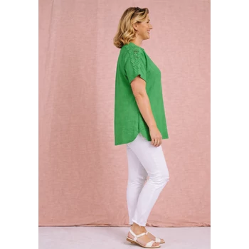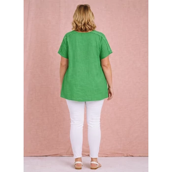Szellős, kellemes viselet a forró nyári napokon ez a csodás horgolt vállán berakásos lenvászon felső. Kerekített nyakmegoldású, egyenes szabásvonalú, ejtett vállú, rövid denevér ujjas. Vállán 8 centiméteres a színével megegyező, elegáns horgolt berakással. Hossza: 80 cm. Magas minőségű, enyhe vasalást igénylő, egyméretes termékünk, Olaszországból. Ajánlom 48,50,52 és 54-es méretet viselő Hölgy vevőinknek. |