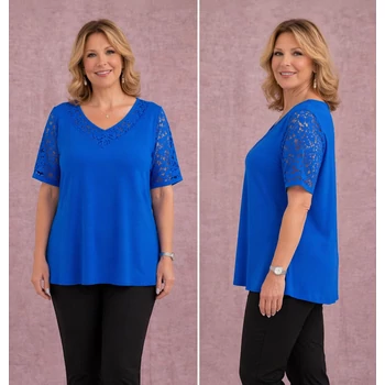 Elasztikus viszkóz anyagból készült igazán különleges A-vonalú tunika. Dekoltázsnál gondosan kidolgozott csipkeberakás található, amely a tekintetet szinte oda vonza. Ugyanez a csipke minta köszön vissza az ujjain is, ezzel téve igazán különlegessé. Kellemes viseletű praktikus felső vagy tunika bármilyen tavaszi és nyári alkalomra elegáns megjelenést adhat. Hossza: 87 cm. Magas minőségű, Olaszországból származó, egyméretes termékünk. Ajánlom 50, 52, 54, 56, 58, 60-as méretet viselő Hölgy vevőinknek |