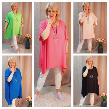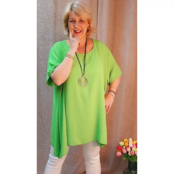 Lágy esésű, kellemes viseletű, nem izzadós, nem gyűrődős organikus viszkóz anyagból készült blúz. Kerekített nyakú, oldalra bővülő fazonú, diszkrét sliccelt megoldással. Hossza: 88 cm. Olaszországból származó, egyméretes termék. A képeken látható nyaklánc csak kiegészítő dekoráció, nem tartozik a blúzhoz. Ajánlom 50,85,54,56 és 58-as méretet viselő Hölgyeknek! |