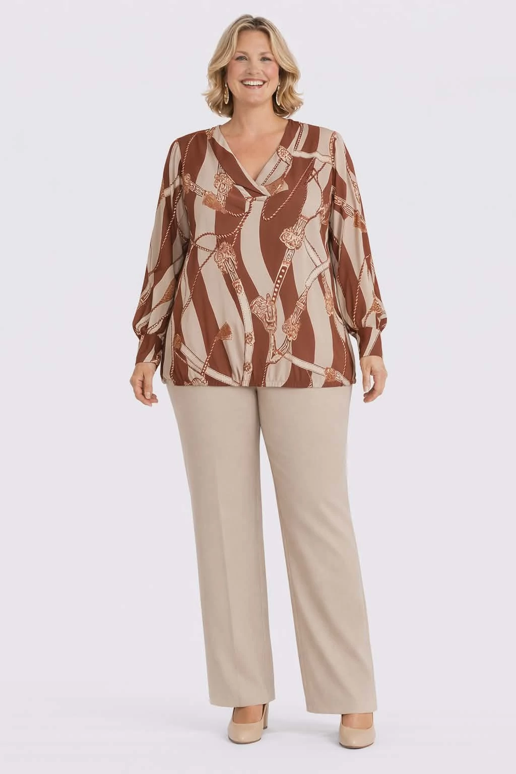 V -nyak kivágással előnyösen nyújtja az alakot. Ujja hosszú ujj.