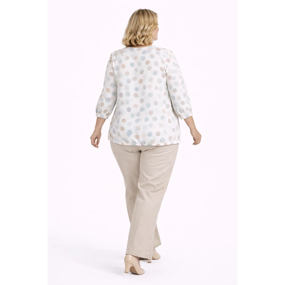 Rugalmas jégselyem anyagból készül lágy szín összeállítású mintás felső.